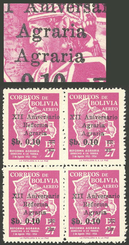 1966 Agrarian Reform 10c. on 27B., block of 4, one with VARIETY: "Agraria - Agraria" instead of "Reforma - Agraria", VF quality! (Image)