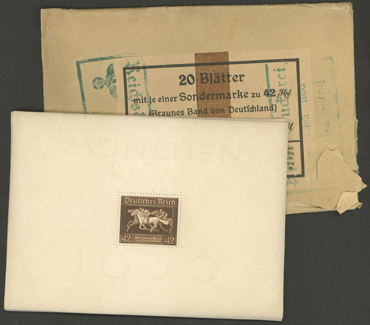1936 Horse racing, 19 MNH and perfect souvenir sheets in the envelope of the Post which originally contained 20 sheets, excellent quality, rare lot, Scott catalog value US$456 (Image)
