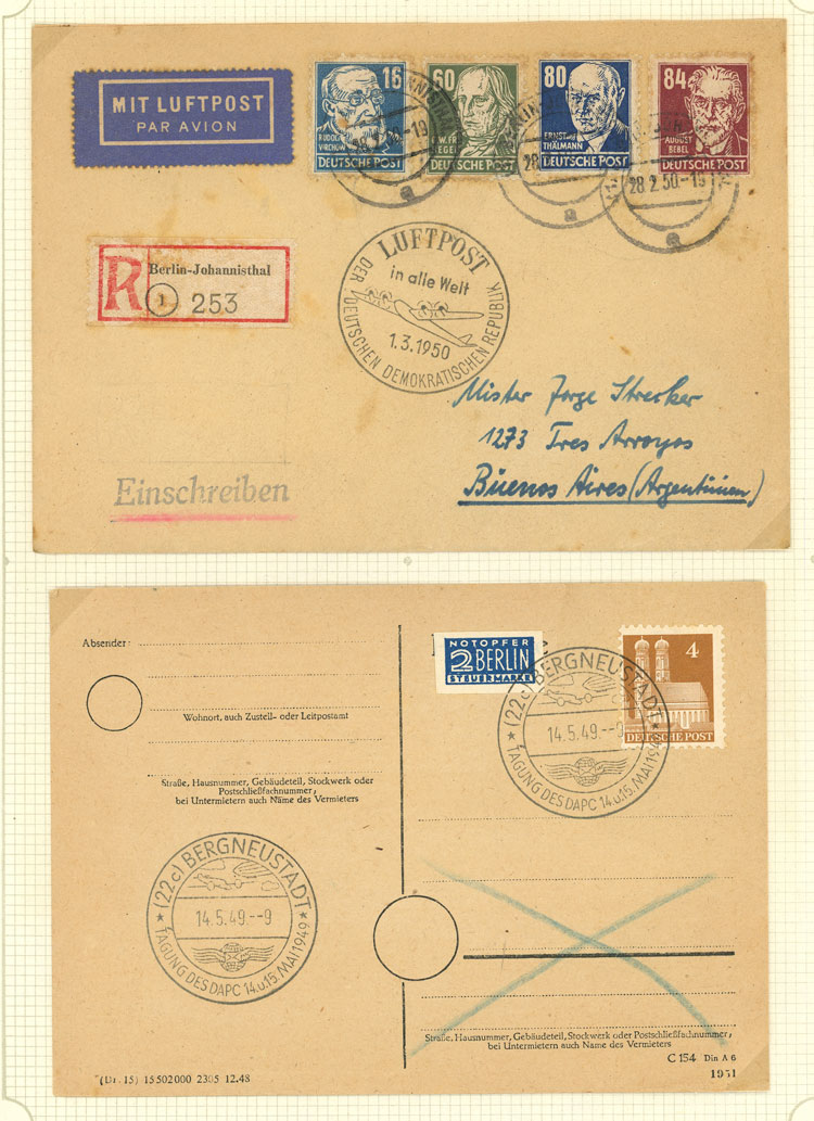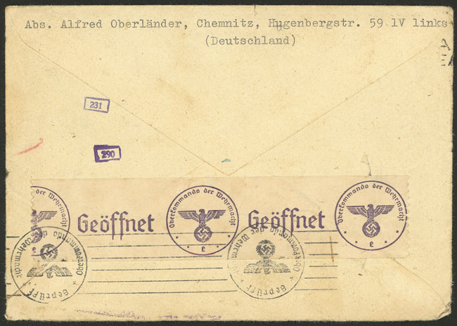 MAIL OF SAILORS OF THE CRUISER ADMIRAL GRAF SPEE at first "interned" and then "prisoners" of war in several camps in Argentina: Airmail cover sent by Mr. Curt Börner in Dresden to his friend Erich Pilz in Buenos Aires on 19/FE/1940,