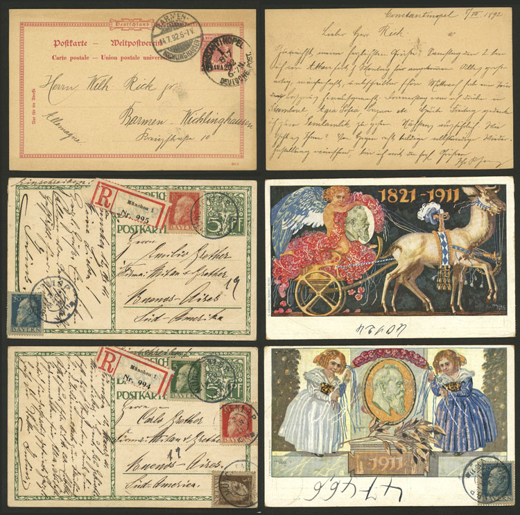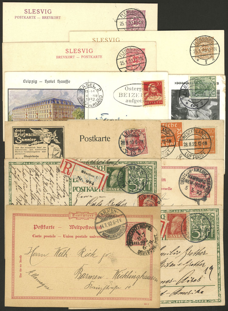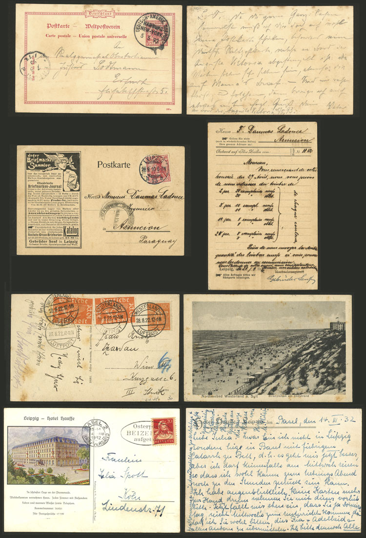 Postcards or postal cards used between 1892/1932 and 3 postal stationeries cancelled to order, including items sent from ships at sea, Levante, an old flight, etc., very good lot! IMPORTANT: Please view ALL the photos of the lot, because all the
