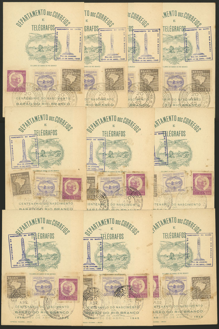 F-O-1, 10 commemorative "folhinhas" of the birth of the Baron of Rio Branco, very fine quality, catalog value 600Rs. (Image)