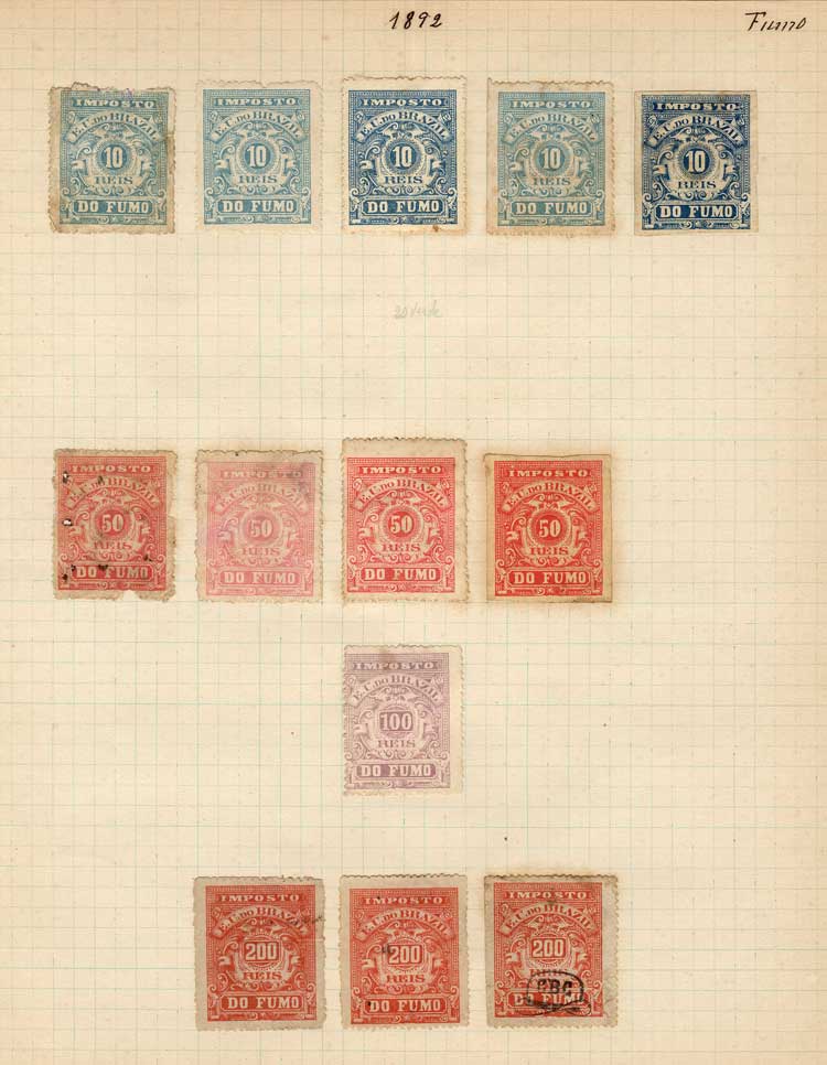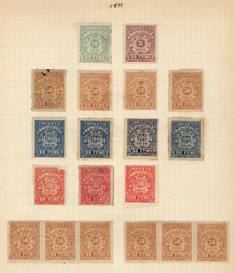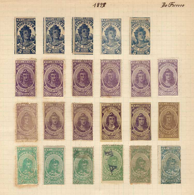 IMPOSTO DO FUMO (cigarettes, tobacco): Old collection on 8 album pages, with 109 stamps, fine quality (some with little defects), very interesting!