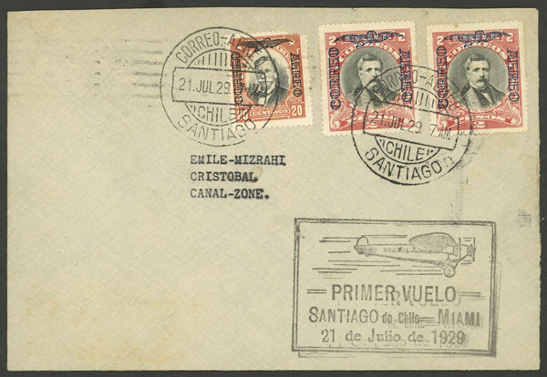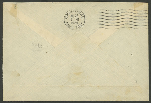 21/JUL/1929 Santiago - Cristobal (Canal zone), Panagra first flight, with special mark and arrival backstamp of 25/JUL, VF! (Image) (Image-02)