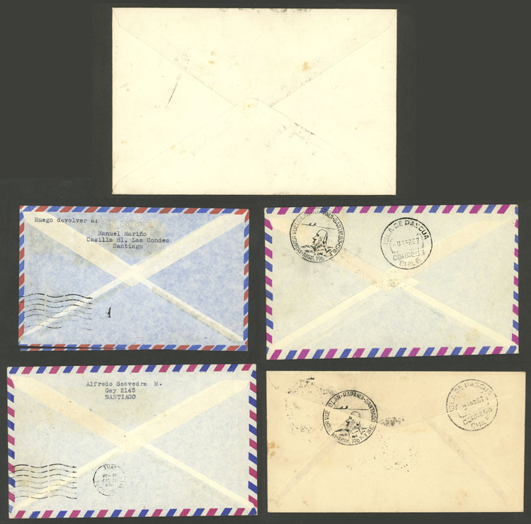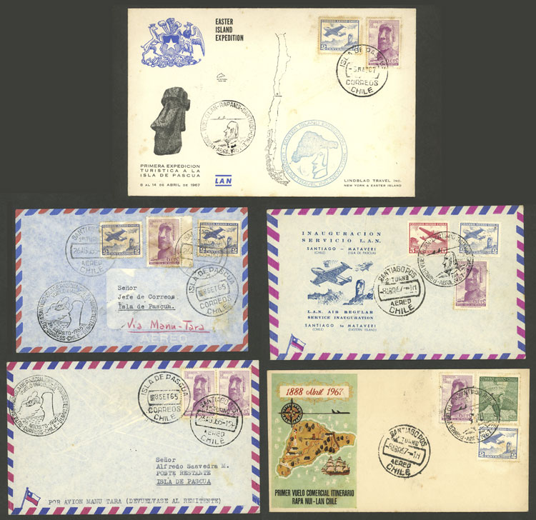 Flights to EASTER ISLAND: 5 Covers sent from Santiago to Rapanui or the other way around in 1967, several are LAN first flights, some with stain spots, all the same a very interesting lot! (Image) (Image-02)