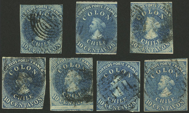 Interesting group of 7 Columbus stamps of 10c., varied printings and shades, low start! (Image)