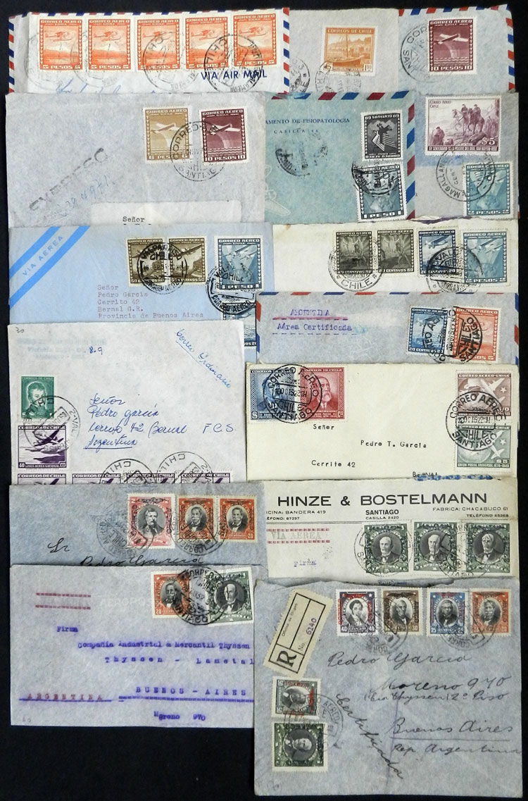 Covers, almost all airmail, sent to Argentina between 1929 and 1956, there are very attracive postages. ATTENTION: please view ALL the photos of the lot, because all the covers have been scanned (both sides) (Image) (Image-02)