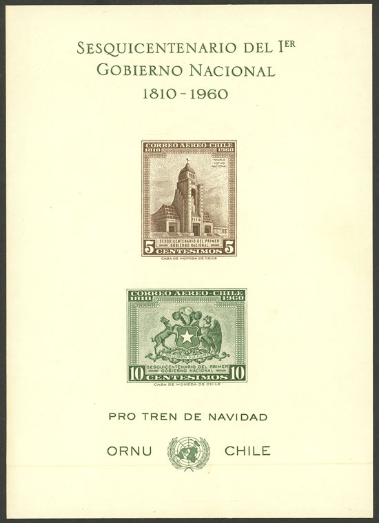 First National Government Junta 150th anniversary, s.sheet of 5c. + 10c., issued without gum, VF quality! (Image)