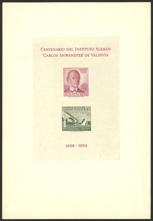 Centenary of the German Institute of Valdivia, s.sheet of 2 values issued without gum, MNH, VF quality! (Image)