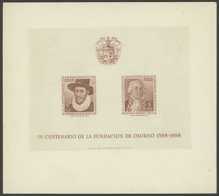Osorno 400th anniversary, souvenir sheet issued without gum, VF quality! (Image)