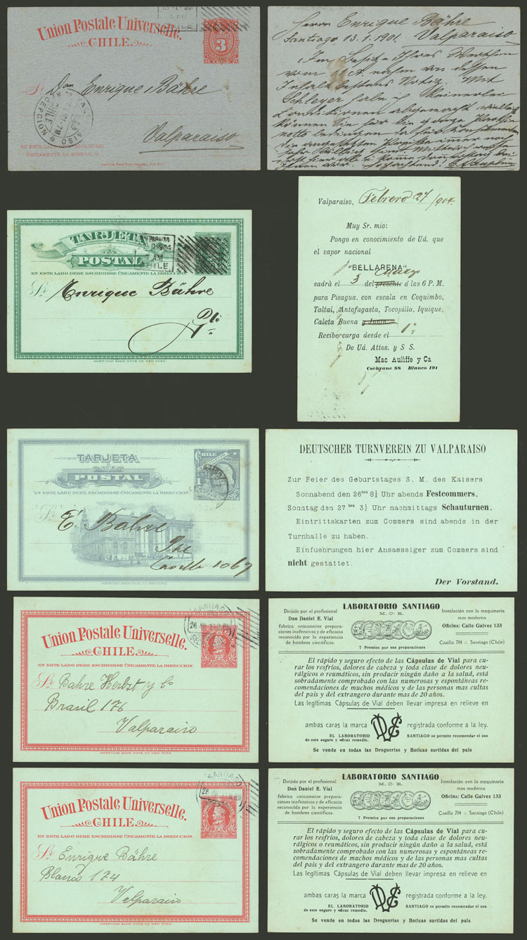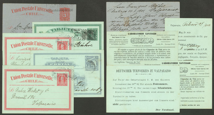 Postal cards used between circa 1901 and 1908, 4 of them have attractive commercial impressions on back, VF quality! IMPORTANT: Please view ALL the photos, because all the cards have been scanned (both sides). (Image) (Image-02)