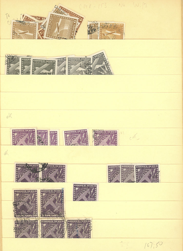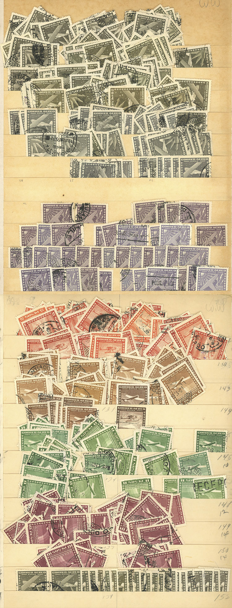 AIRMAIL: Large number of stamps (many hundreds) mounted on stock pages, most used and in general of fine to very fine quality, perfect lot to look for rare watermark positions, varieties and scarce cancels, good opportunity! ATTENTION: