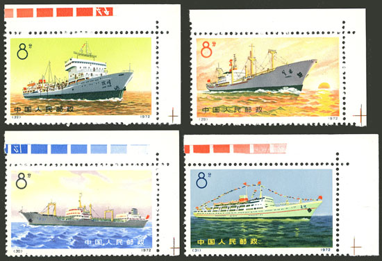Sc.1095/1098, 1972 Ships, complete set of 4 values, MNH (issued without gum), sheet corner, excellent quality! (Image)