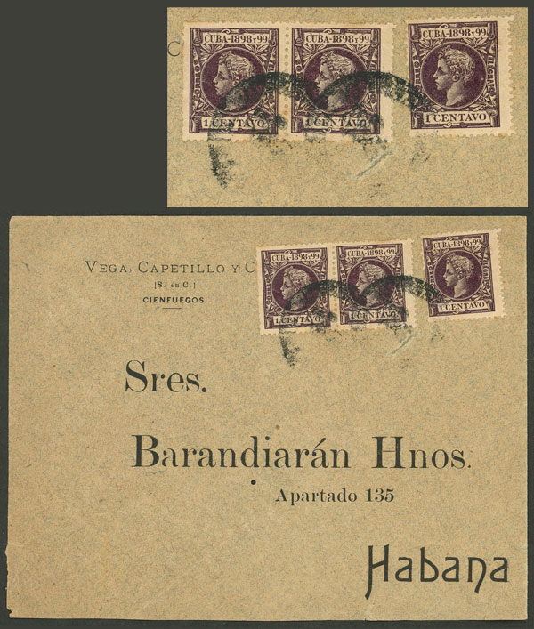 Old cover sent from Cienfuegos to Habana franked with 3c., back flap missing else excellent! (Image) (Image-02)