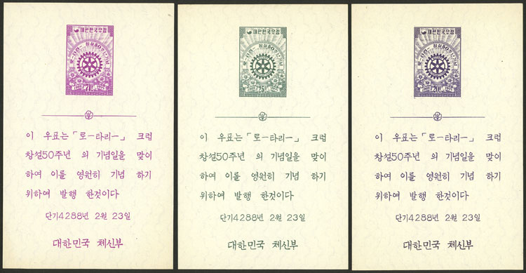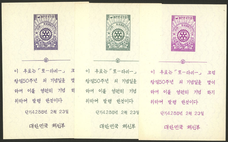 1955 Rotary, the set of 3 souvenir sheets, MNH (issued without gum), very fine quality, rare!! (Image) (Image-02)