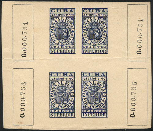 ESTADO: year 1896/7, block of 4 of 2P. blue, mint original gum, VF quality! (Image)