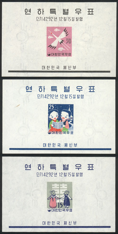 Sc.298a/300a, 1959 Christmas and New Year, cpl. set of 3 imperforate souvenir sheets, MNH, VF quality! (Image)