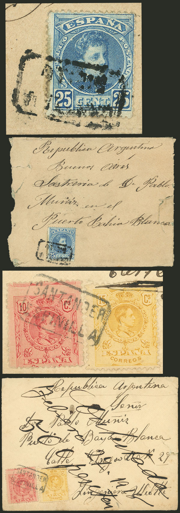 CARTERIA MARKS: Couple of covers (one containing the original letter) sent to Argentina (circa 1918), franked with 25c. and cancels "SANTANDER - ESPINILLA" and a different one, interesting! (Image) (Image-02)