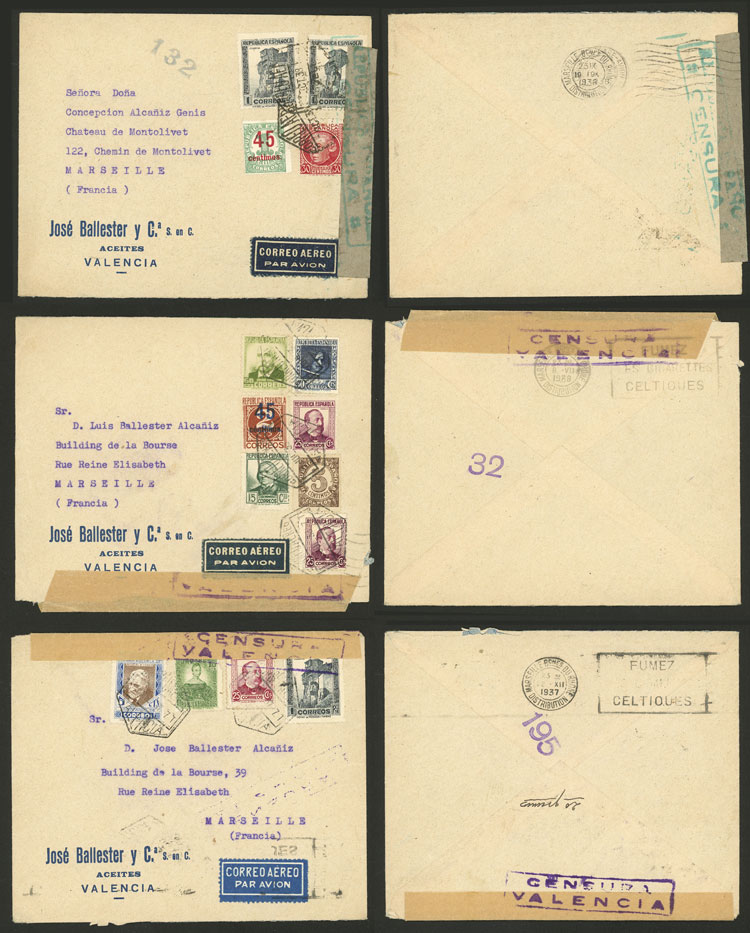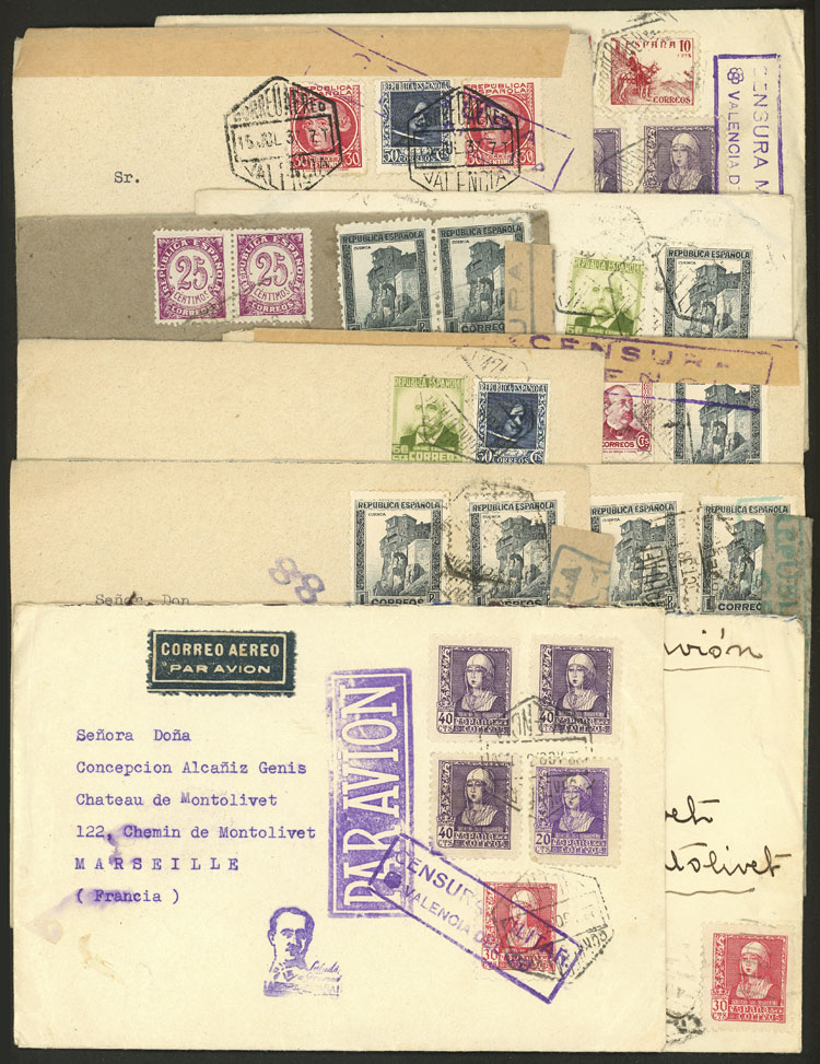 Airmail covers sent to Marseille (France) between 1937 and 1939, all with attractive censor marks and nice postages, several are registered, in general of excellent quality! IMPORTANT: please view ALL the photos of the lot, because all the covers