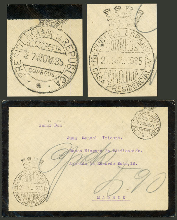 Official mourning cover sent from the Casa Presidencial to Madrid on 27/NO/1935, VF quality! (Image) (Image-02)