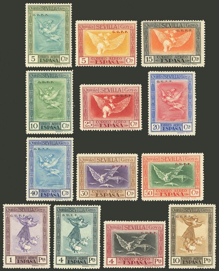 Sc.C18/C30, 1930 Goya, the set of 13 values with "C.U.P.P." overprint, tiny hinge marks, they appear to be MNH, excellent quality! (Image)