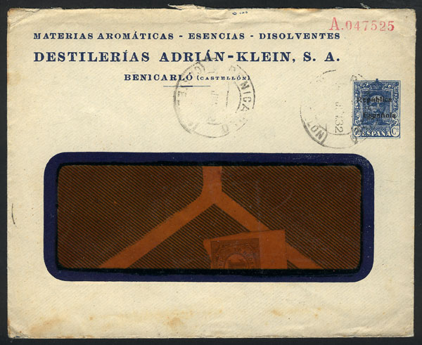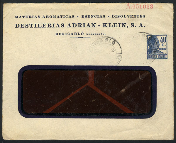 Private stationery envelope of 40c. of Adrián-Klein Distillery, of Benicarló (Castellón), sent to Argentina in 1932, VF quality, rare! (Image) (Image-02)
