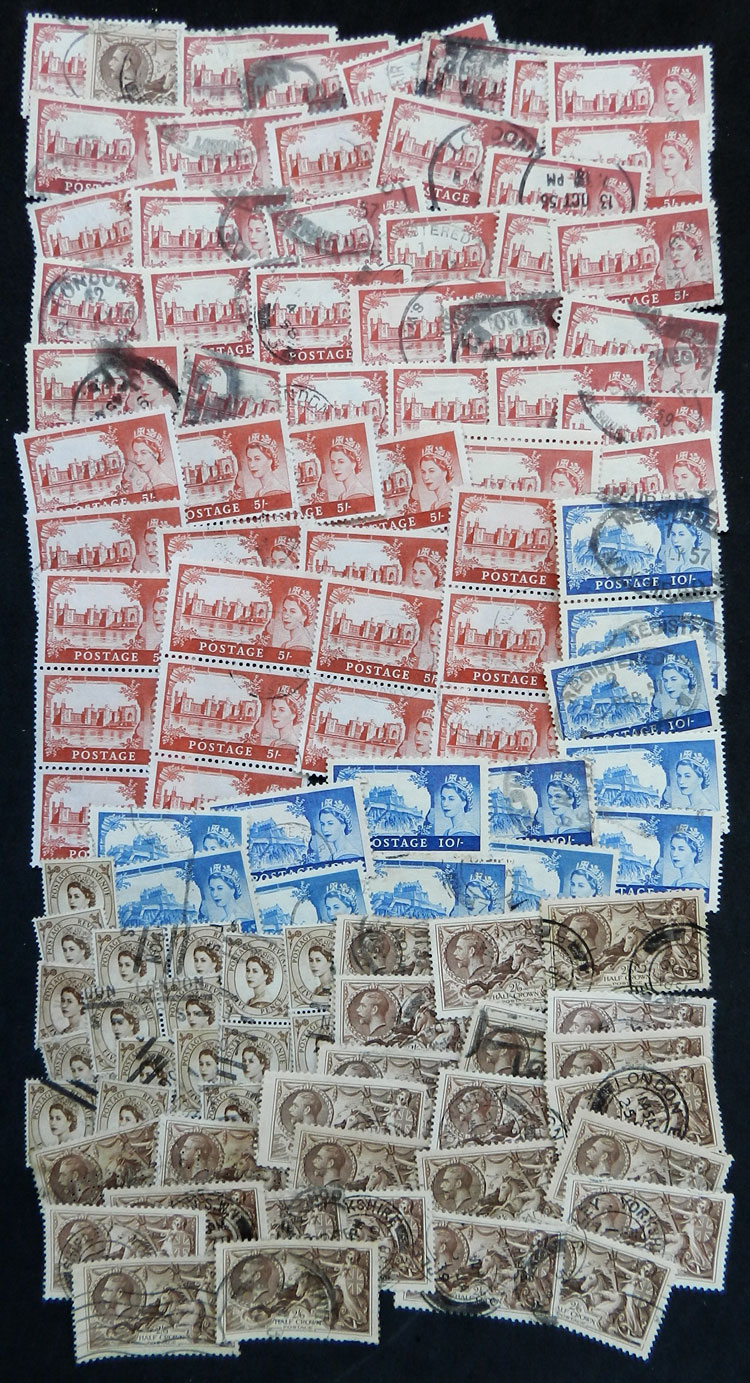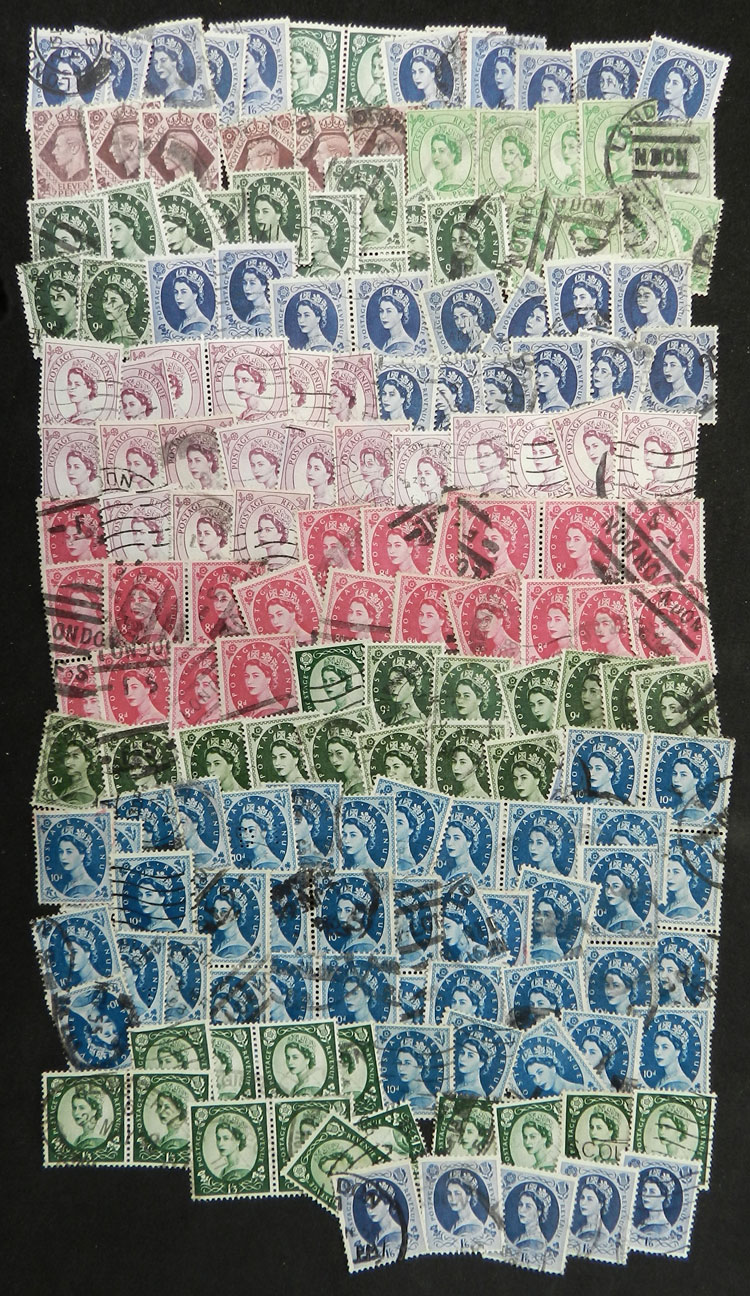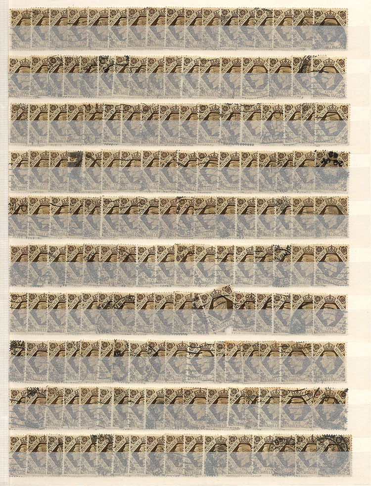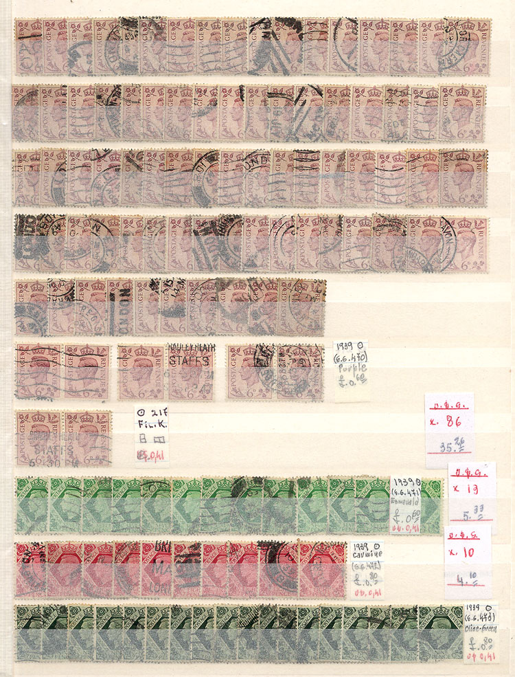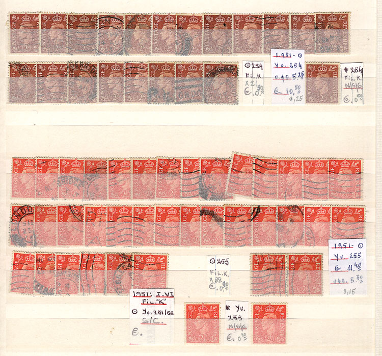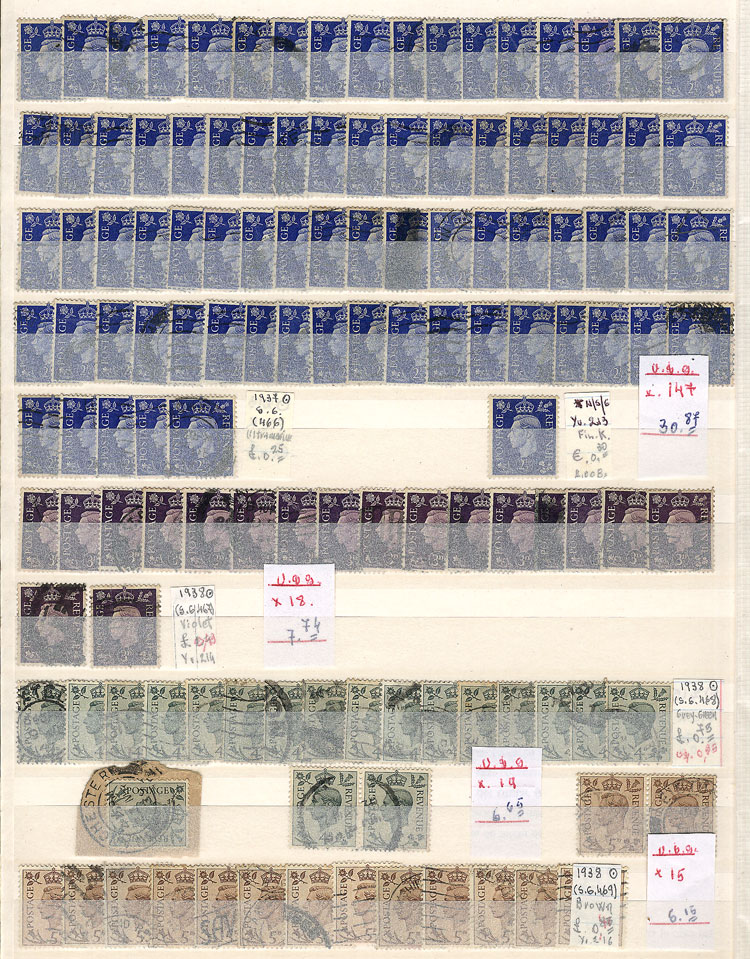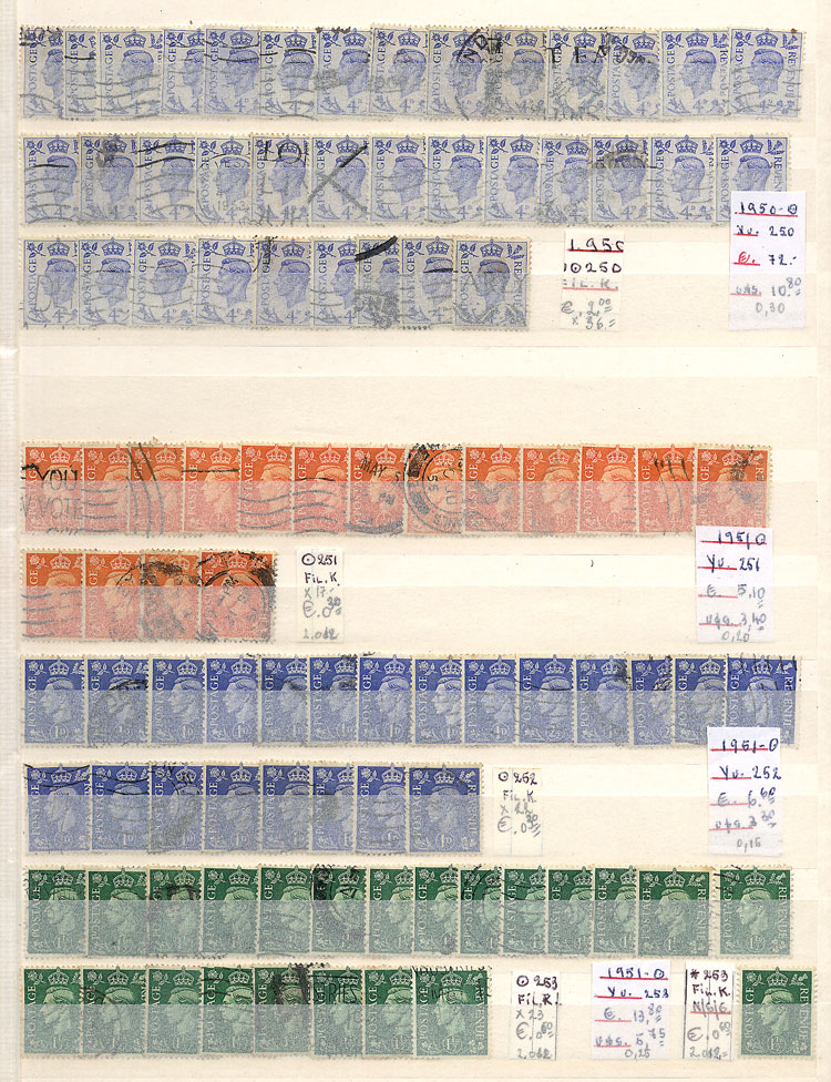 Several hundreds used definitive stamps (George VI) mounted in 2 stockbooks, including some examples with inverted watermark, and there are also some color varieties. Interesting lot for the specialist, low start! (Image) (Image-02)