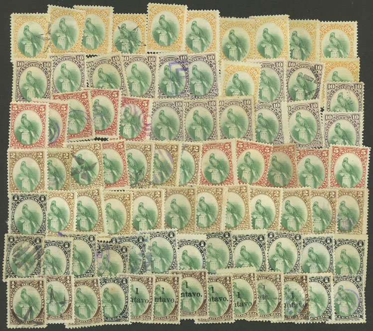 otros, 1879 and 1881 Quetzal, lot of used or mint stamps (they can be without gum), fine general quality (a few may have defects), perfect to study or for retail resale with important profit, catalog value US$700+ (Image)