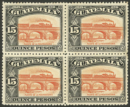 1921 15P. La Penitenciaría bridge (train), MNH block of 4, excellent quality (Image)