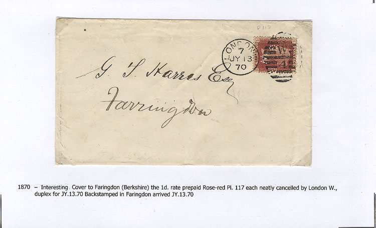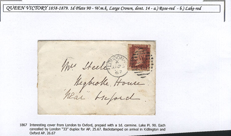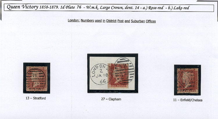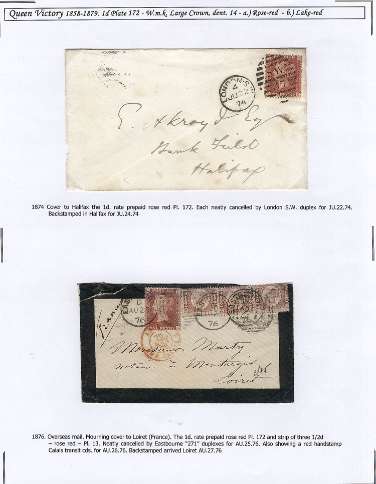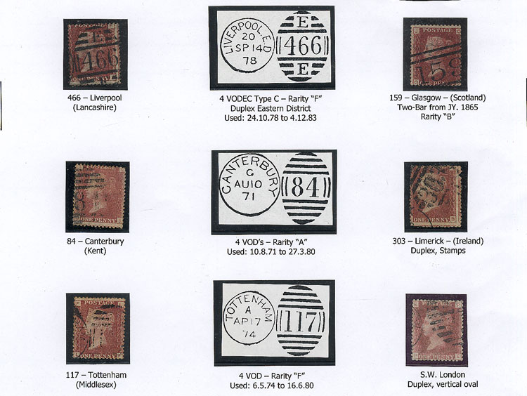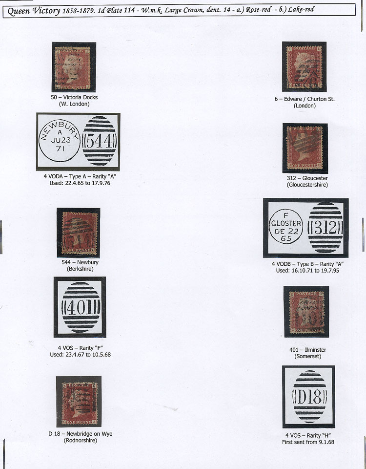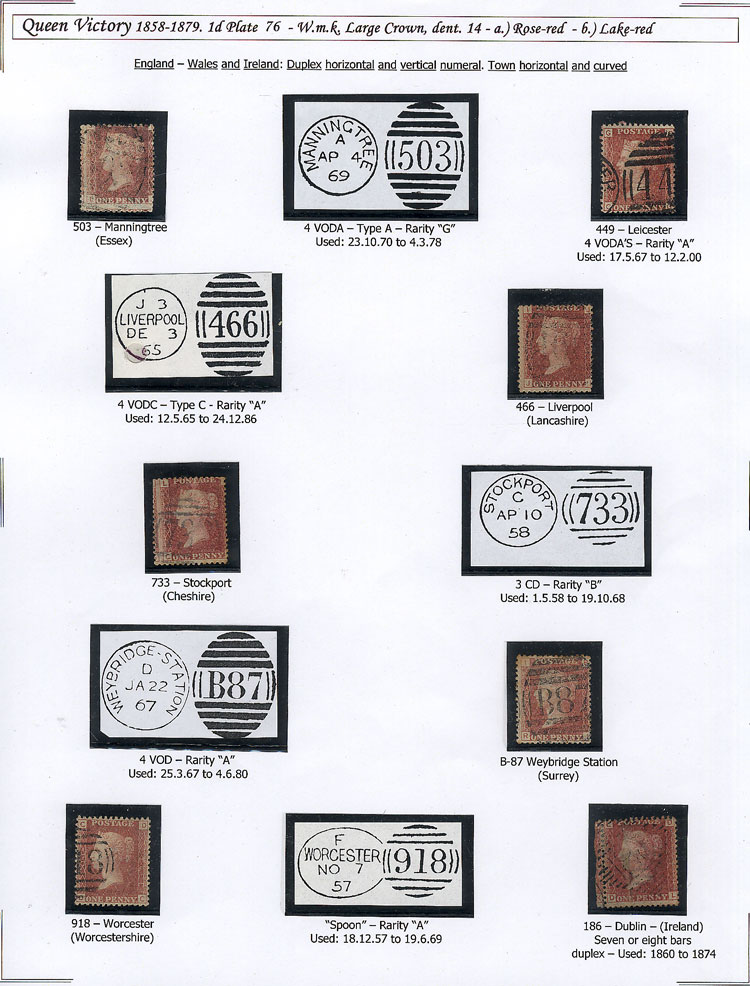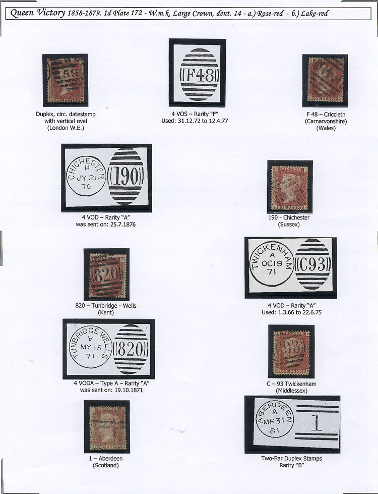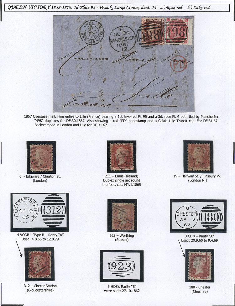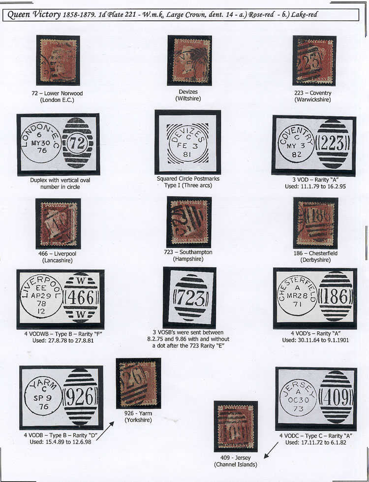 CANCELS on the 1p. of 1864 (Sc.33, SG.43), developed on pages according to the plate number, including some multiples, fragments and several covers (in total 44 covers and 449 stamps that include fragments, pairs and even a strip of 6!),