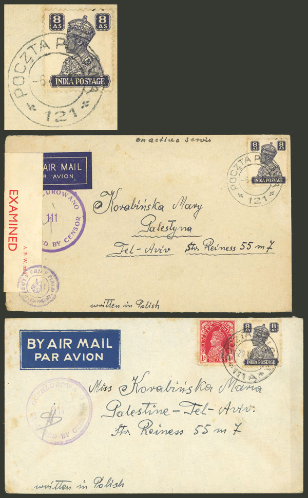 Polish army in India: Couple of covers sent to Palestine in 1943, interesting censorship, etc., VF quality! (Image) (Image-02)