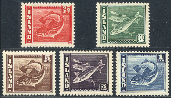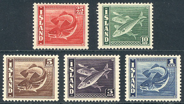 218a + 219c + 221b + 224b, 1939/45 The set of 5 values with perforation 14 x 13½, mint, very fine quality, catalog value US$149. (Image)