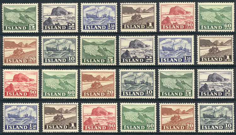 261 + 263/4 + 266/8, 1950 Definitives, the 8 values issued that year (other 4 were issued later), 3 sets mint lightly hinged, very fine quality, catalog value US$120+