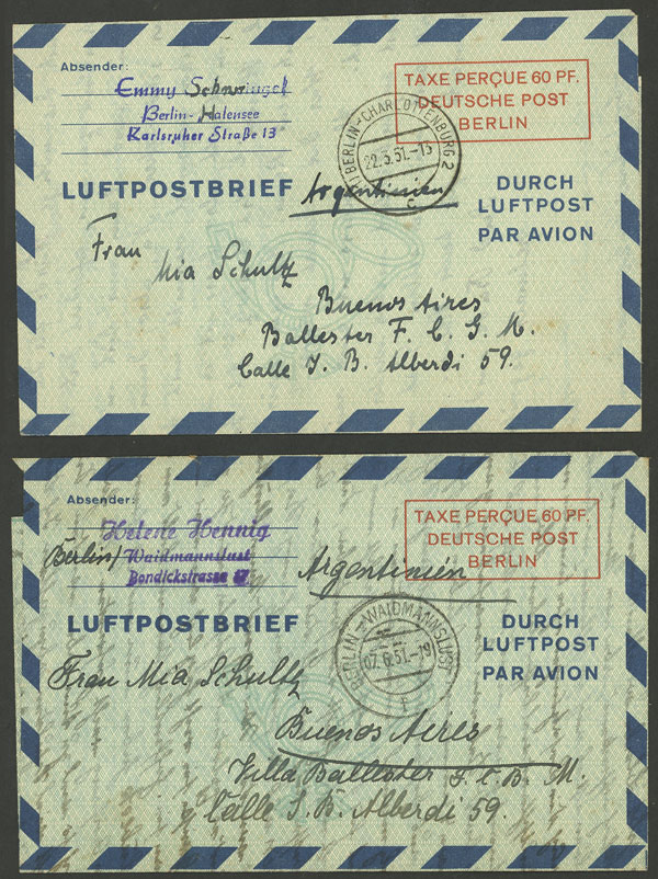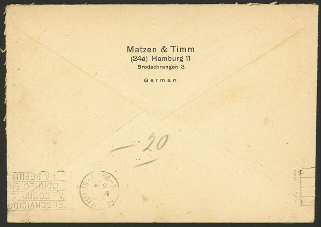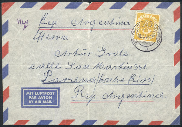 Airmail cover sent from Hamburg to Argentina on 9/SE/1948 franked with 80Pg. and a special airmail label perfectly cancelled, excellent quality, Michel catalog value Euros 400+ (Image) (Image-02)
