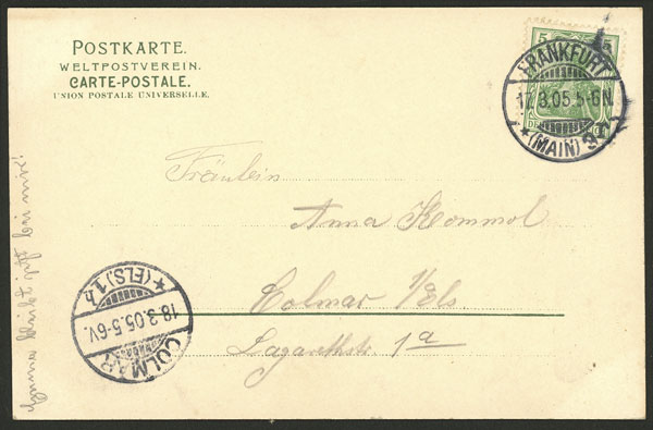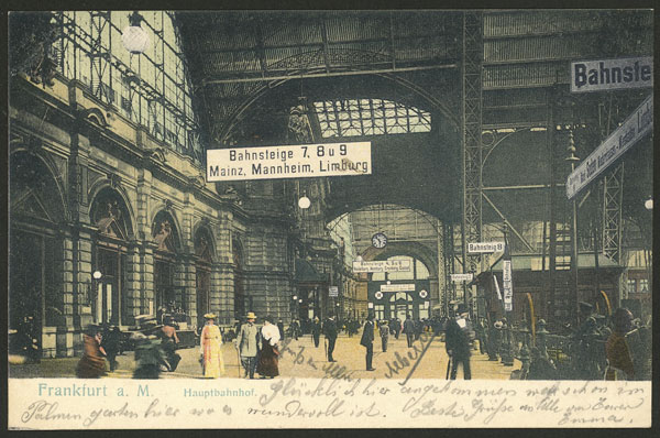 FRANKFURT: Very nice view of the train station, used in 1905, VF quality! (Image) (Image-02)