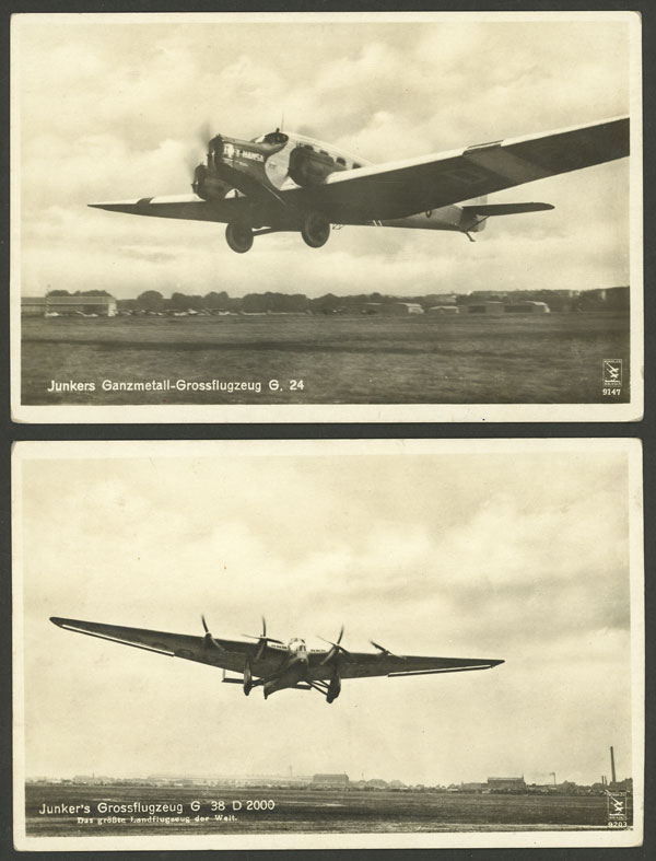AVIATION: 2 old postcards with views of Junkers airplanes, VF! (Image) (Image-02)