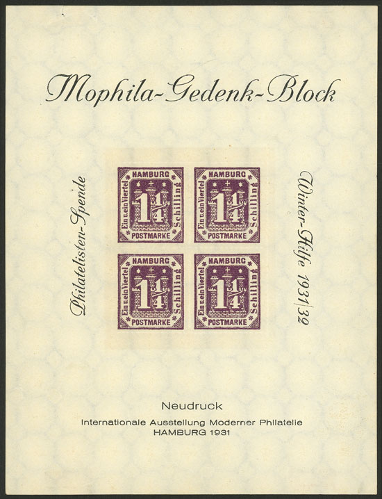 commemorative sheet with reproduction of Hamburg stamps, VF quality! (Image)