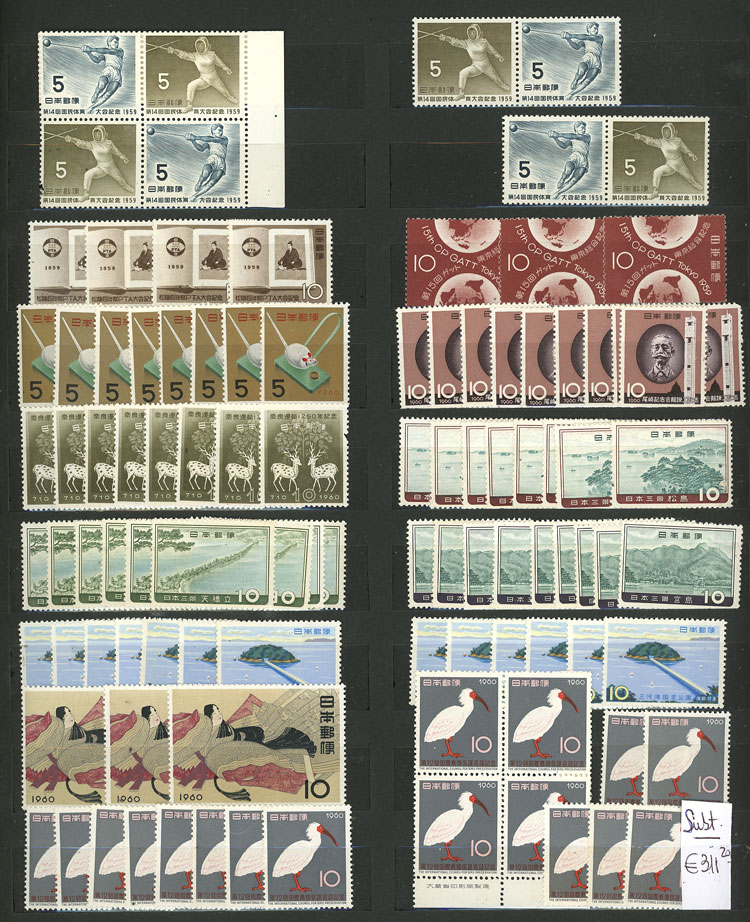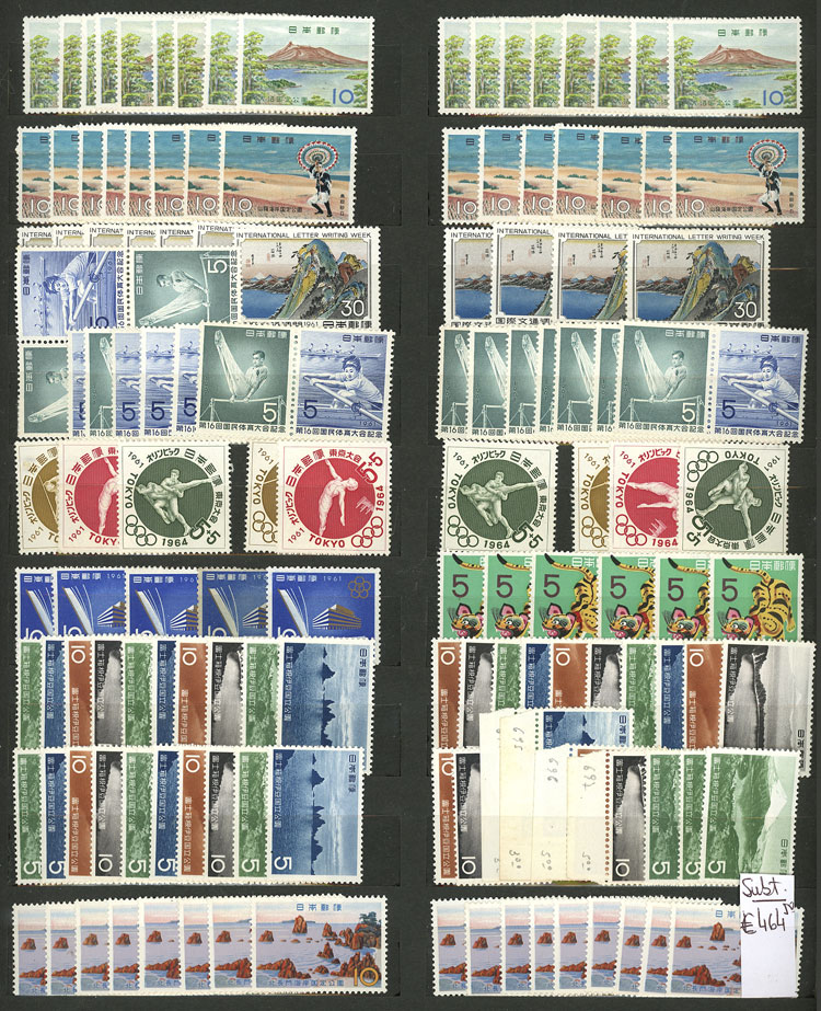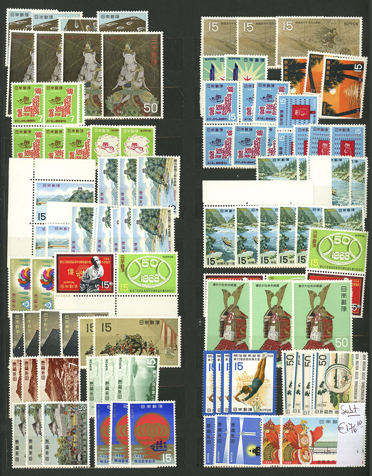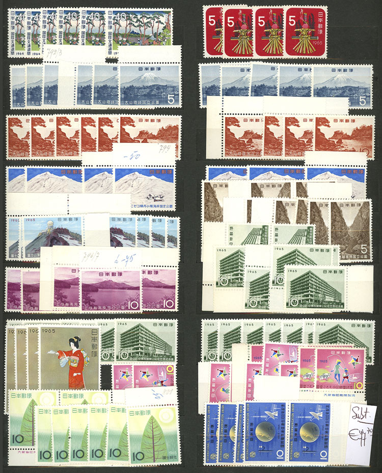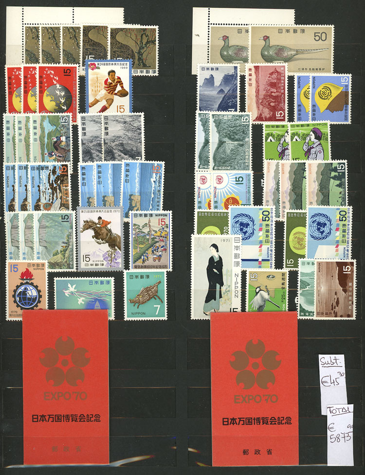 CHEAP POSTAGE: Lot of MNH stamps of excellent quality, issued mainly in 1970s, with face values mainly of Y20, 50 and 100, IN TOTAL Y.18,000+ (equivalent to approximately US$170), low start! (Image) (Image-02)