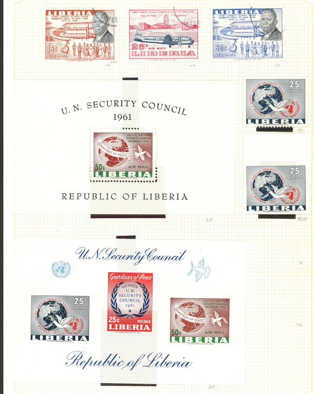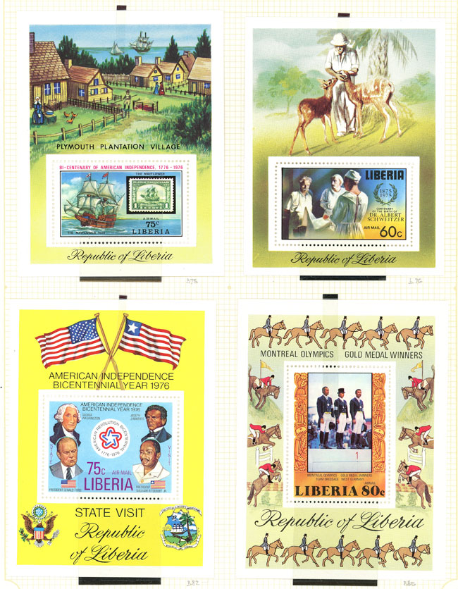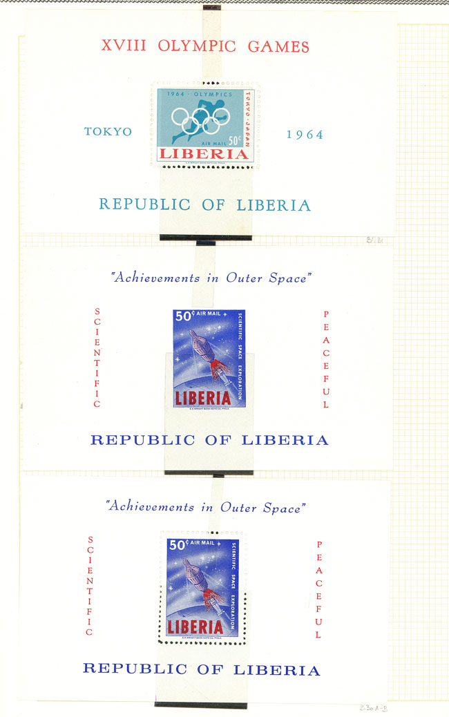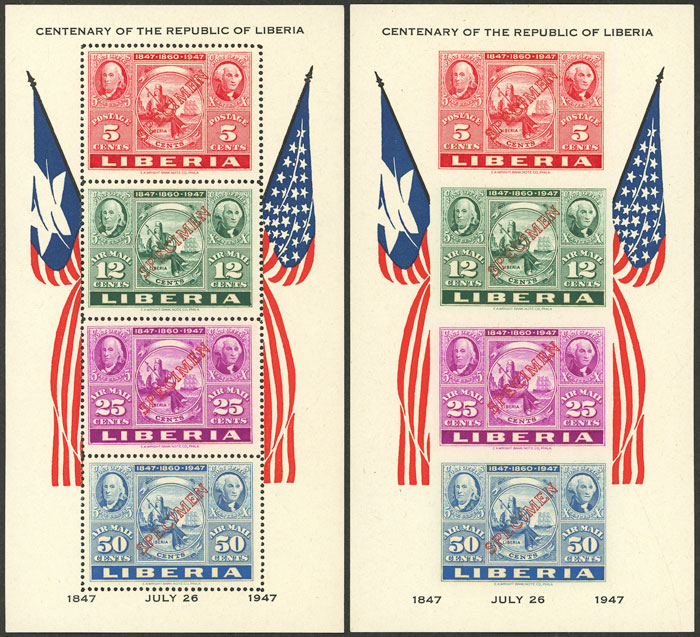 Sc.C56a, 1947 Centenary of Liberia, souvenir sheets with 4 values, all overprinted "SPECIMEN", perforated and imperforate, MNH and of excellent quality!