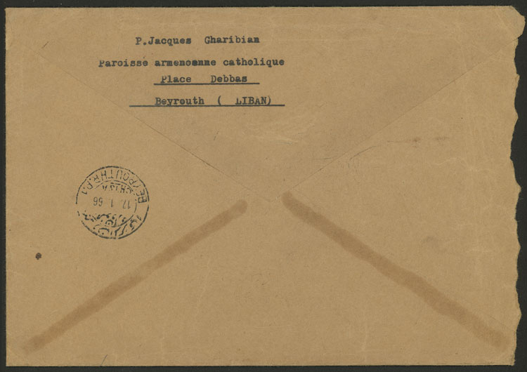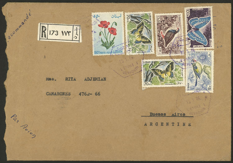 15/JA/1966 Beyrouth - Argentina, registered airmail cover with attractive multicolor postage (total 317.50p.), VF! (Image) (Image-02)