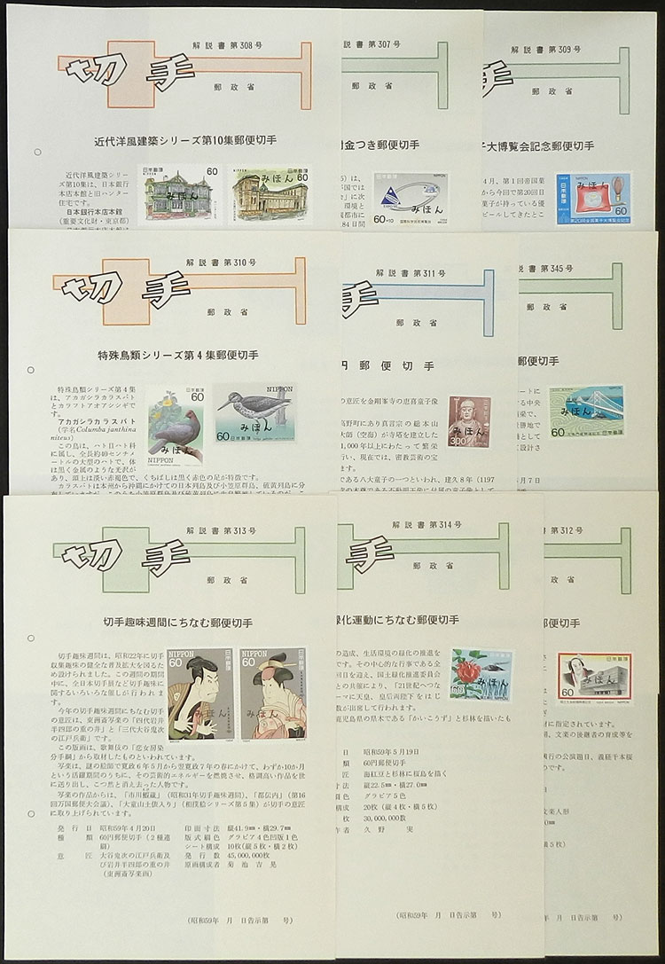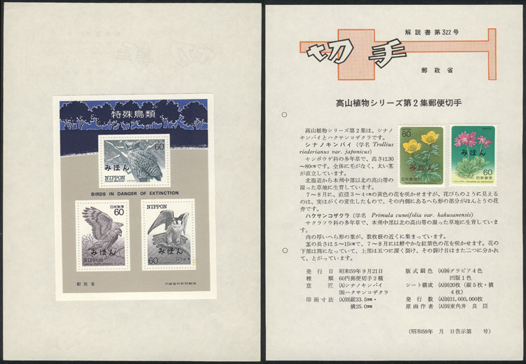 Post announcement bulletins with information of the issues and the stamps (glued) overprinted MUESTRA, interesting lot! (Image) (Image-02)