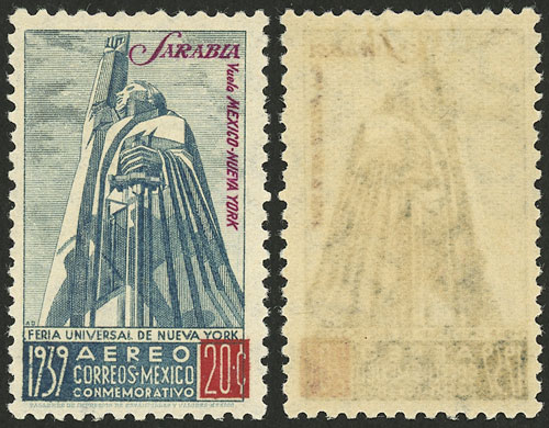 89 (Scott C93A), 1939 Flight of Francisco Saravia, mint with (probably) tiny and almost invisible hinge mark, appears to be MNH, fresh, impeccable, excellent copy!