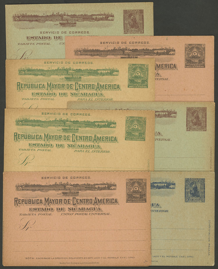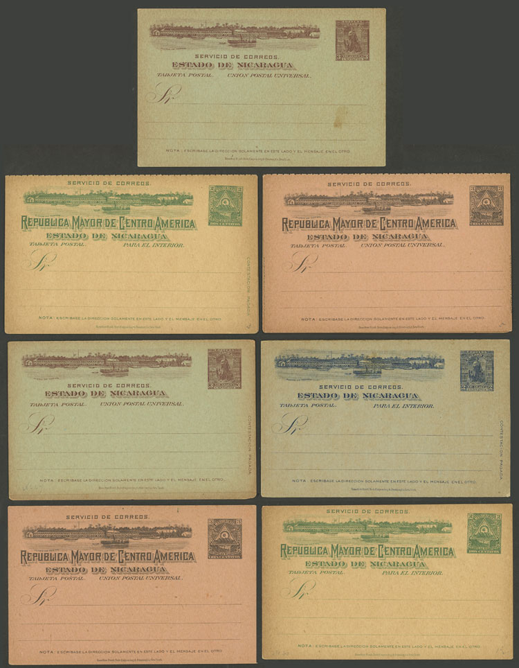 Old postal stationeries (cards), 7 different formats (10 examples of each), very thematic: ships, ports, mountains, maps. General quality is very fine, low start!