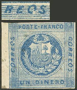 other values, Un Dinero blue, 17 used examples, several different printings, also wide range of shades and cancels, a quick glance reveals VARIETIES: "frame broken at right of the first O of CORREOS", "DINEKO", etc, in general of fine to very fine