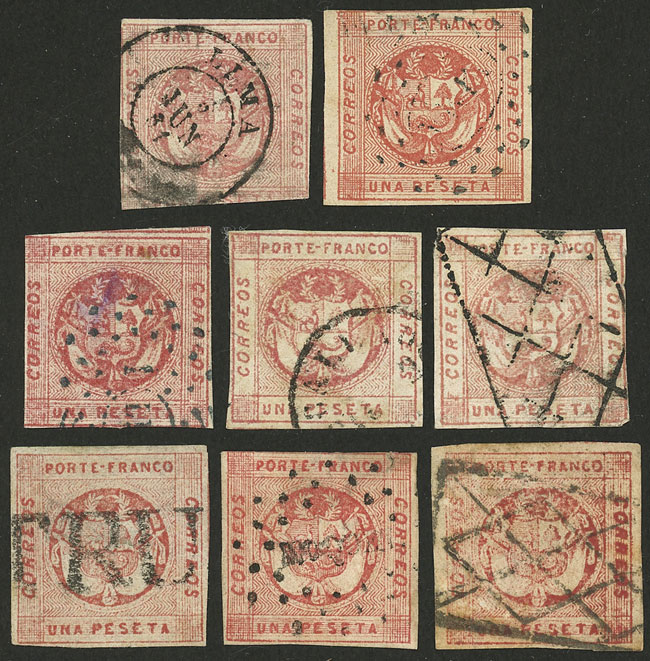 7, 7a, 7c, 7d, 1860 1P., 8 used stamps, varied shades, plate wears, cancels, some with small defects but of fine appearance, low start! (Image)