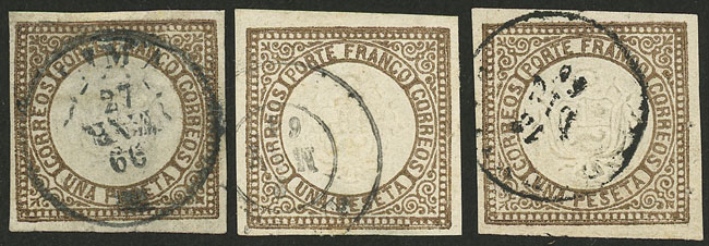 1863 1P. brown, 3 used examples, excellent quality! (Image)