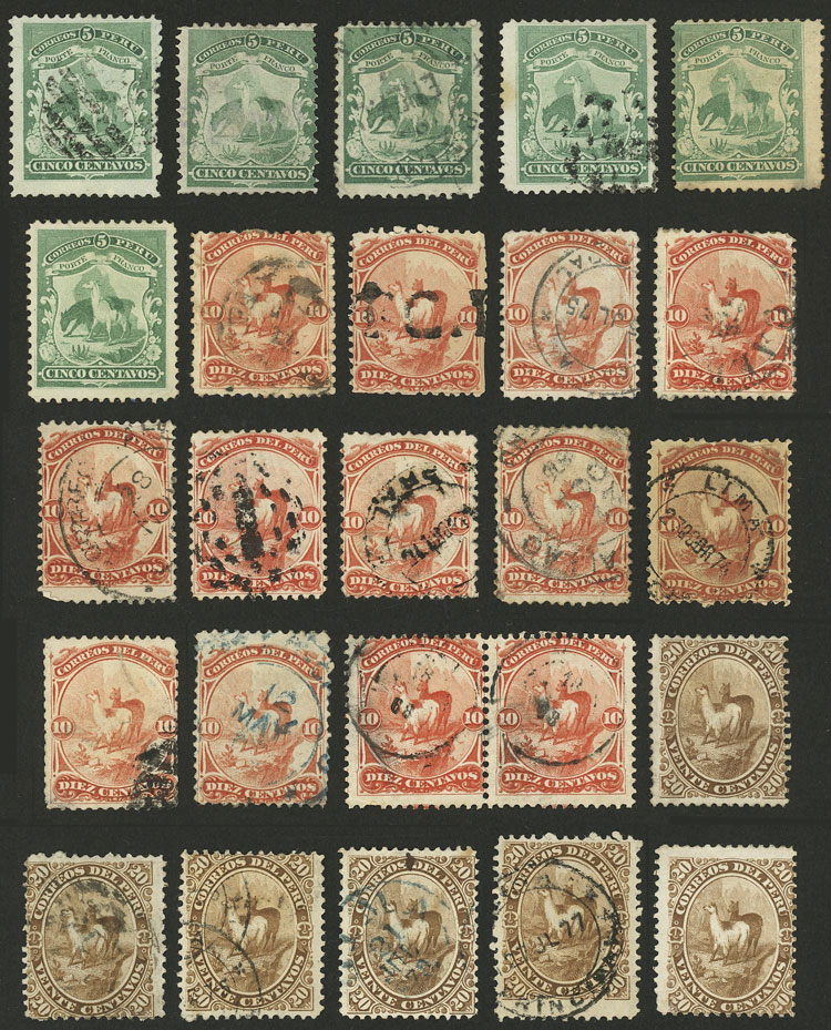 Sc.16/18, 1866/7 Llamas, several of each value and in general used, varied cancels, most of fine to very fine quality, very nice group! (Image)