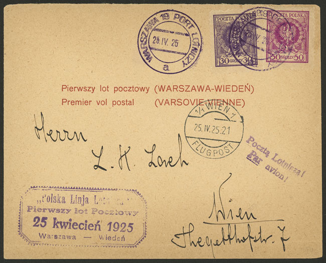 25/AP/1925 Warszawa - Wien, first airmail flight, via Krakau, a total of 250 covers were flown, VF! (Image) (Image-02)