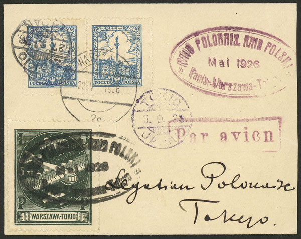 26/AU/1926 Warszawa - Tokyo (Japan), test flight ley by Lieutenant B.Orlinski. The flight started in Paris, and they landed in Warszawa on 22/MAY, due to various problems they could only resume on 27/AU, and they arrived in Tokyo on 5/SE,