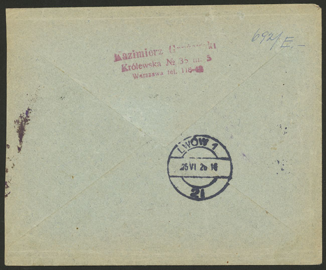 25/JUN/1926 Warszawa - Lwow, airmail cover with special label, arrival backstamp, excellent quality! (Image) (Image-02)
