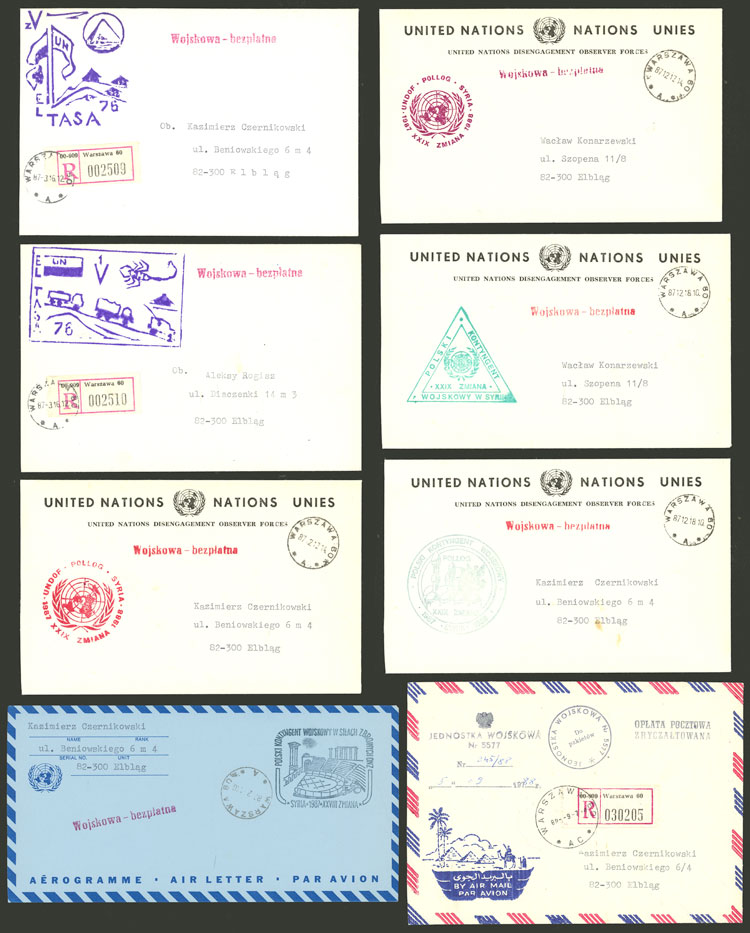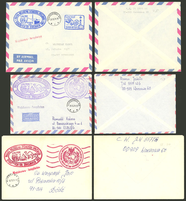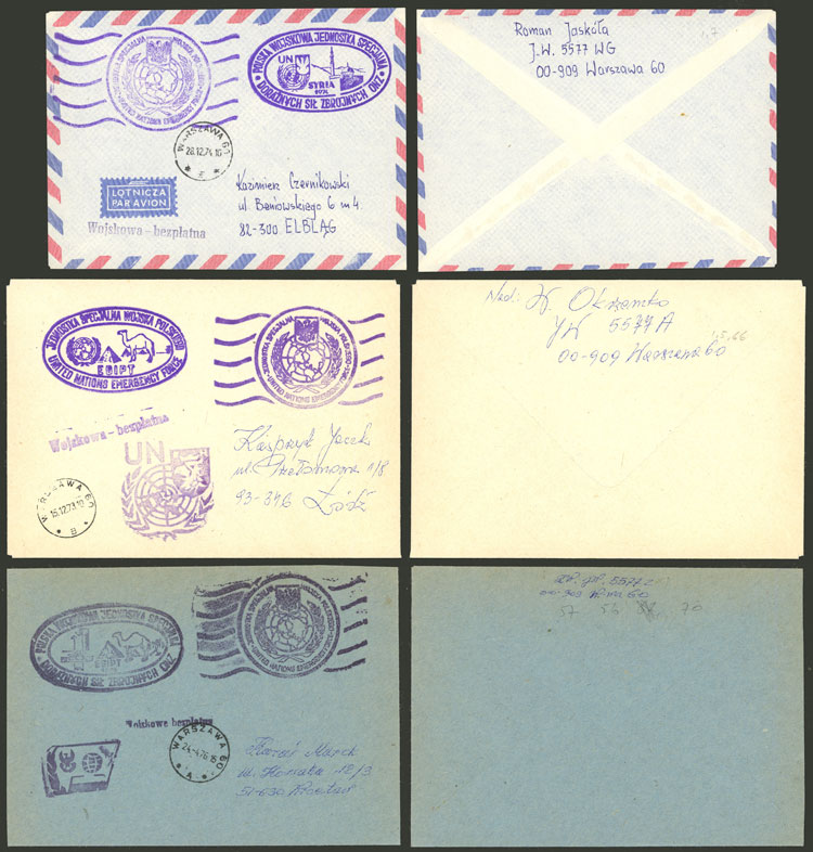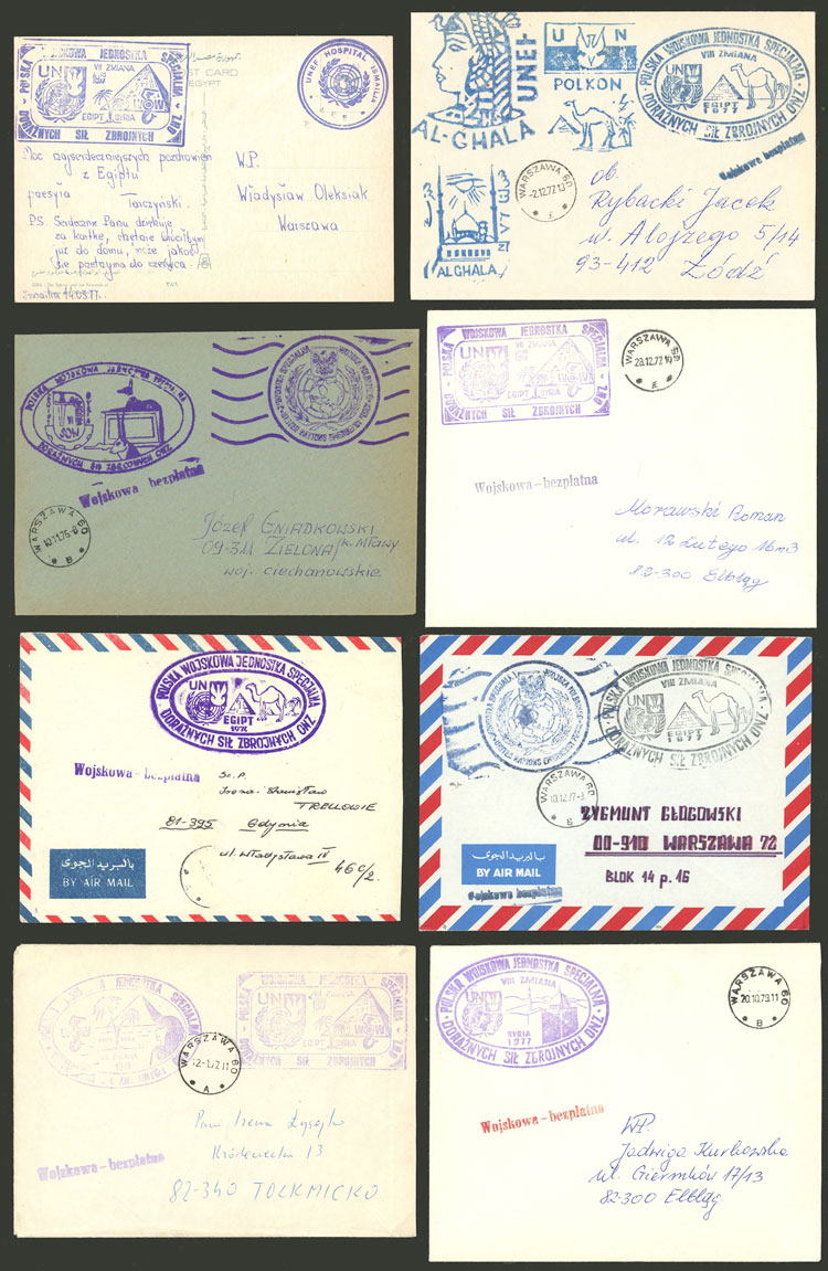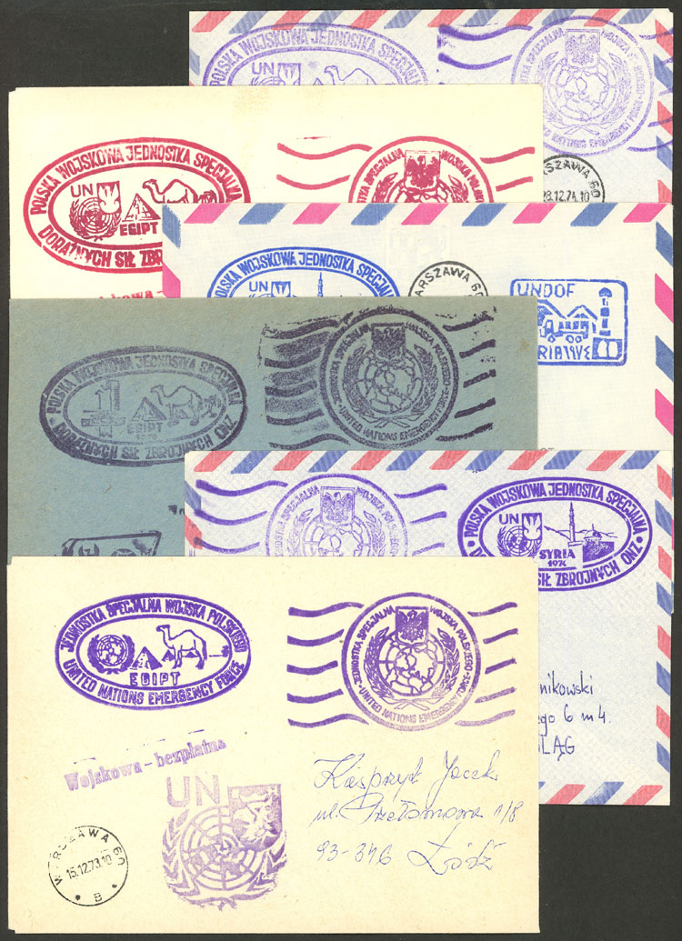 Polish forces in Egypt and Syria: 6 Covers with various marks, used between 1973 and 1976, excellent quality! IMPORTANT: Please view ALL the photos of the lot, because all the content has been scanned. (Image) (Image-02)